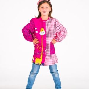 26,30€Bata escolar de cuadros Color fucsia. Cierre con botones delanteros Etampado jirafa Gomas en puños -