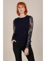 48,00€Jersey manga larga Marca Molly Bracken Cuello alto Escote y mangas transparentes con encaje Puños con volante Color azul -