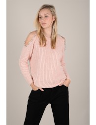 54,00€Jersey de manga larga Marca Molly Bracken Corte recto Cuello redondo Hombros descubiertos Abalorios en los hombros Color rosa -