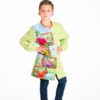 Bata escolar de cuadros pistacho. Bolsillo y lado derecho con estampado Jirafa y sus peques. Cierre con botones delanteros de color azul y gomas en los puños. Composición 60% algodón 40% poliéster. Su tejido permite un lavado, secado y planchado fácil y rápido. Cinta en el cuello.