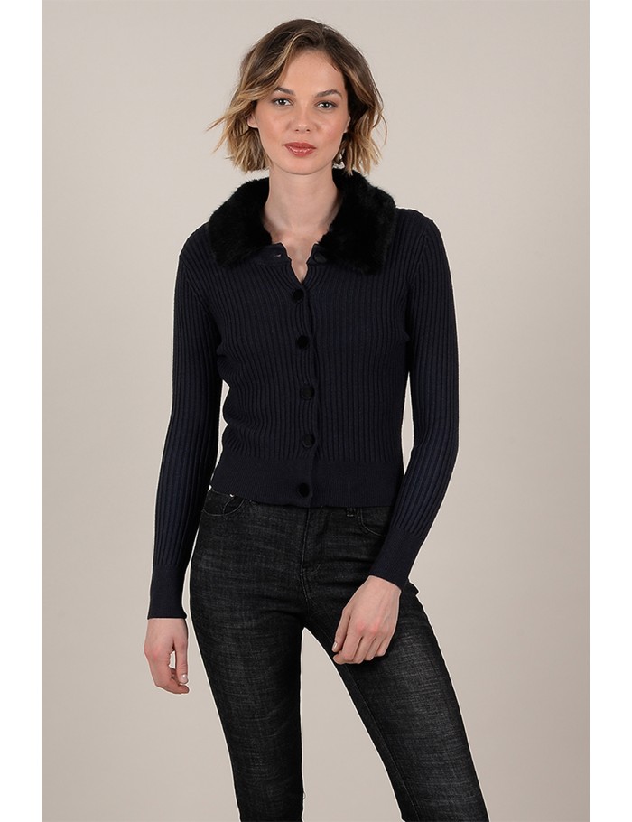 CARDIGAN MOLLY BRACKEN CON BOTONES Y CUELLO PELUCHE