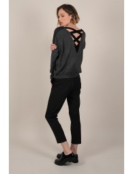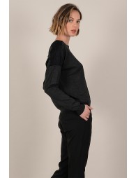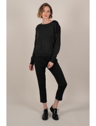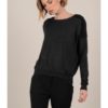 Jersey de manga larga, cuello barco y hombros caídos. Modelo con apertura en la espalda, puños y bajo estrechos.