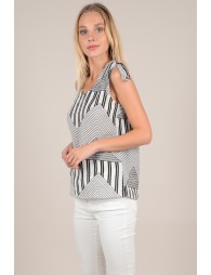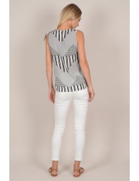 Top sin mangas, de corte recto, tela fina con impresión gráfica y lazo en un hombro