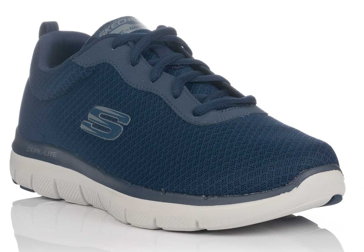 Zapatilla Skechers de hombre, confeccionada en malla knit de aspecto deportivo con panel sintético liso en la cordonera para una mayor durabilidad, forro interior de tela suave y plantilla confort Air Cooled Memory Foam para una buena amortiguación. Refuerzo de tejido superpuesto en el talón con trabilla para tirar en la parte superior y detalle de logotipo S en el lateral. Media suela FlexSole, flexible y ligera para la absorción de impactos.
