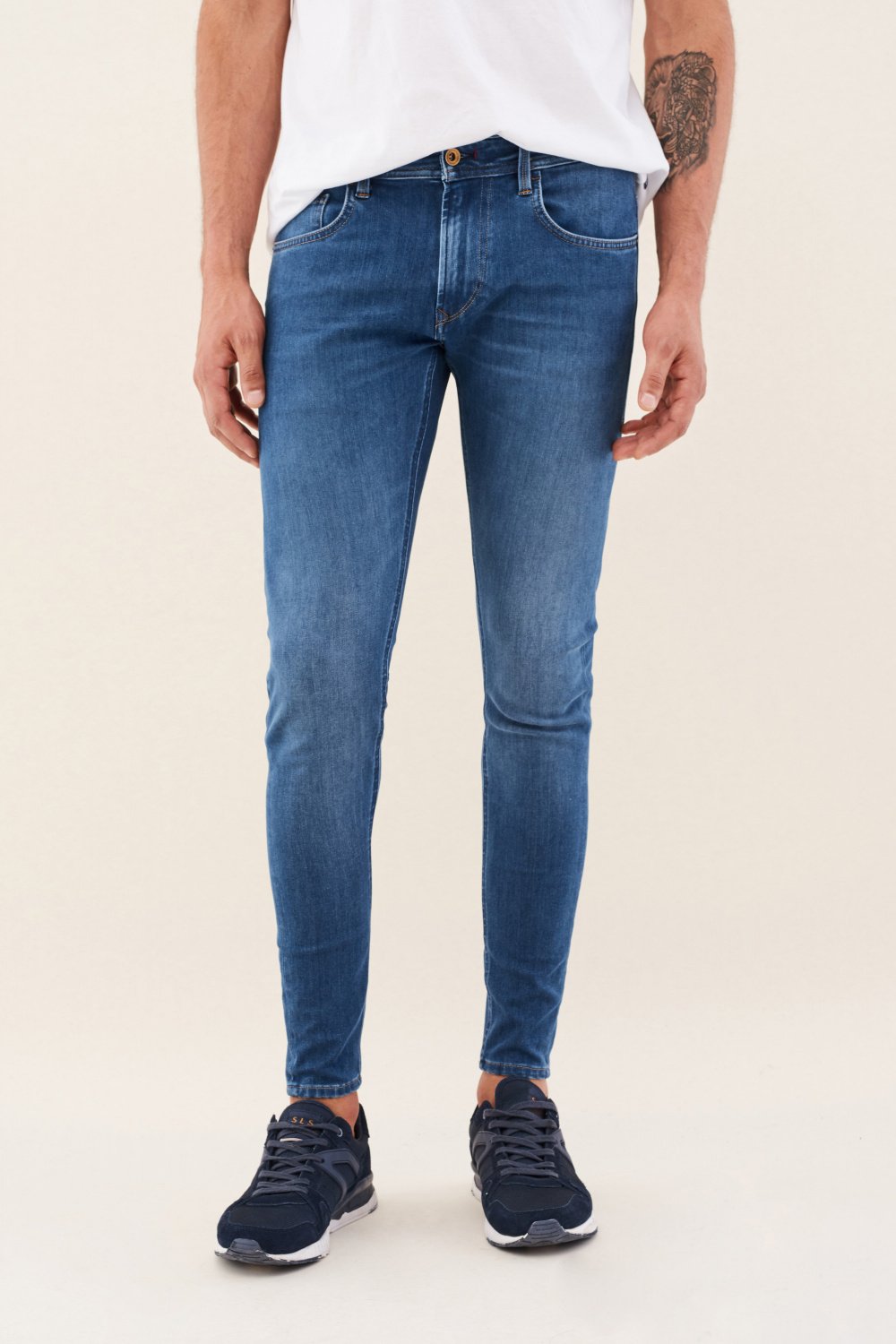 El más ajustado de nuestros pantalones skinny fits, hechos con una estructura denin super elástica y con el estilo clásico de 5 bolsillos para conseguir el look de tus vaqueros favoritos, con la comodidad de un estilo skinny.
